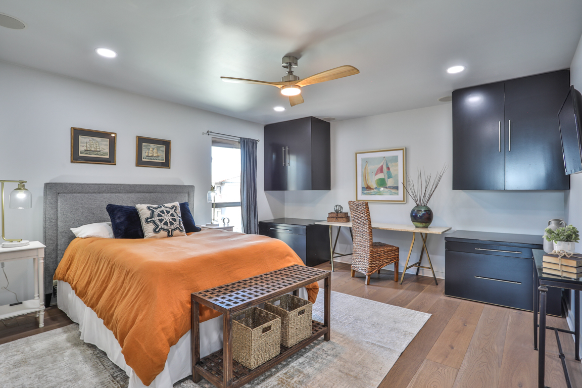 This beautifully upgraded condo offers over 1,800 square feet of stylish living with serene bay views. The lower level features a private guest en suite, convenient laundry area, and an exceptional primary suite with custom upholstered walls, custom bathroom finishes, multiple closets including a walk-in, and serene water views that create a true sense of escape. Upstairs, the bright living room opens to stunning views and flows seamlessly into the dining area with a custom built-in banquette, perfect for entertaining. The upgraded kitchen features high-end appliances and bar seating, while a renovated bathroom adds convenience for guests. A third bedroom near the upper entry provide additional comfort and flexibility.