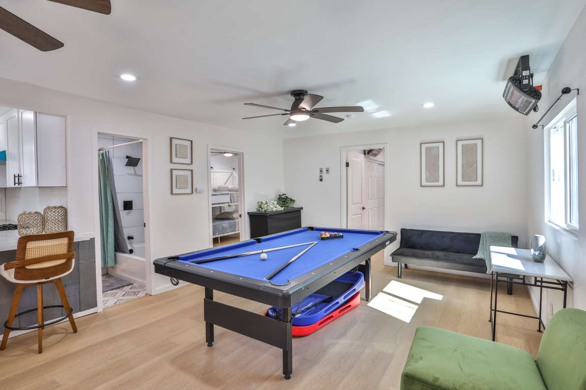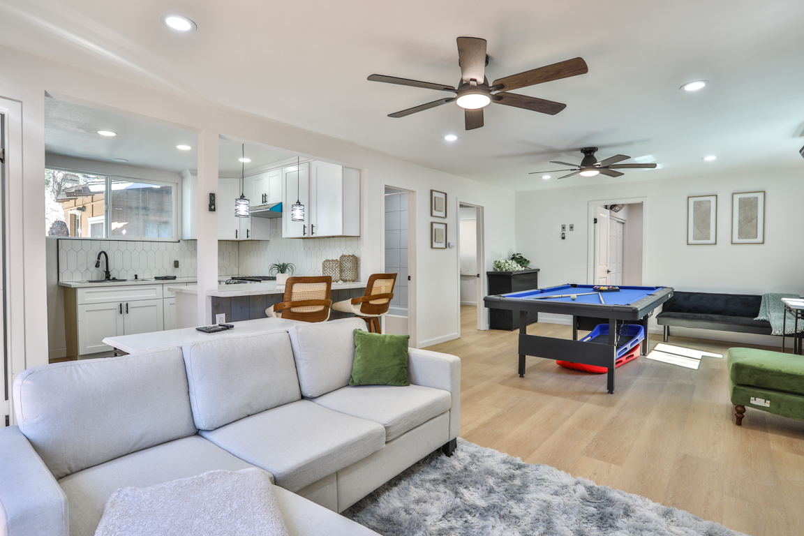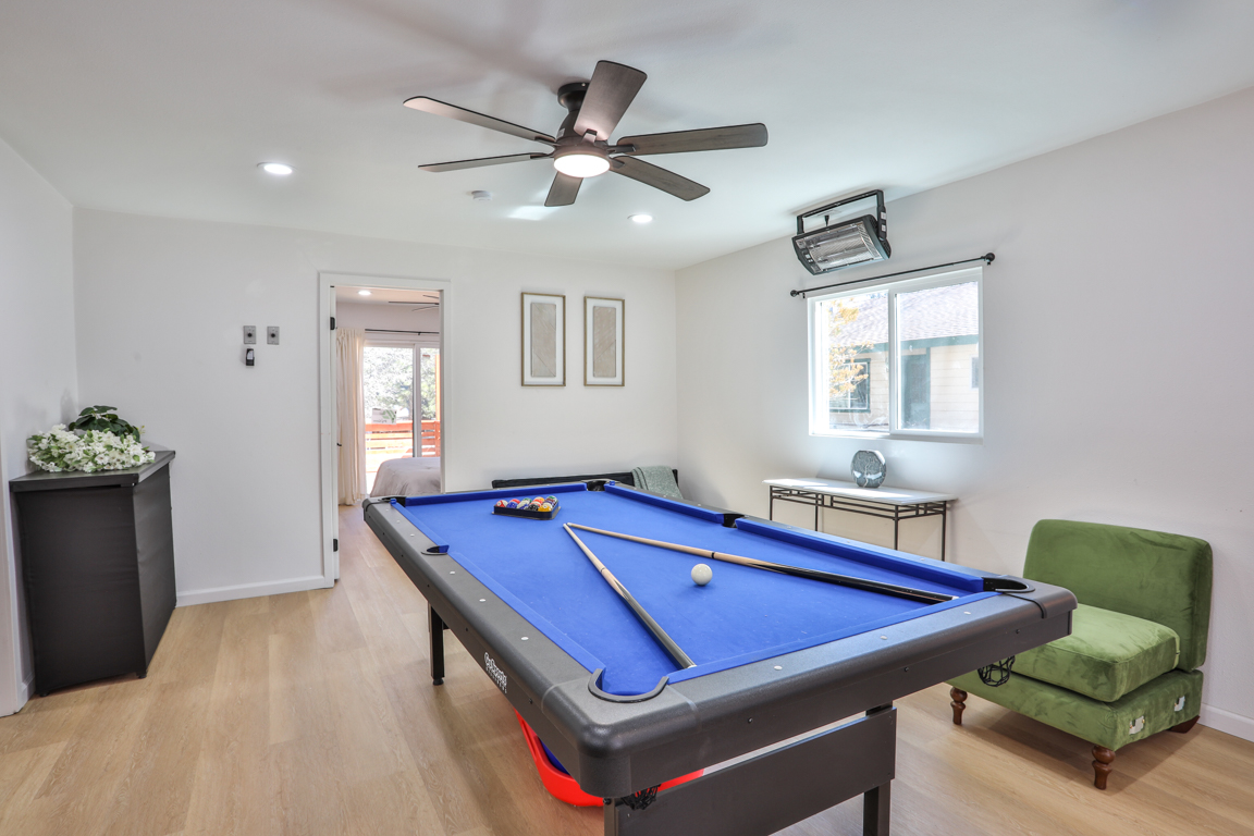 Nestled in one of the highly sought-after areas of Big Bear, California, this charming single-story vacation property offers a rare opportunity for multigenerational living, rental income, or the perfect mountain retreat. Designed as a two-unit property "ADU" and approved for Short Term Rental, it combines comfort, style, and versatility in a setting that captures the essence of Big Bear living. As you approach the home, you are welcomed by a massive custom driveway providing parking for up to ten vehicles—ideal for hosting family and guests. The driveway leads to an expansive custom front patio, perfect for relaxing and enjoying the fresh mountain air. The primary front unit features a spacious two-bedroom, one-and-a-half-bath layout with a light and bright interior, fresh paint, quartz countertops, and custom cabinetry. The property has been extensively updated with new plumbing, electrical, fixtures, recessed lighting, ceiling fans, and upgraded switches and outlets throughout. A modern fireplace provides warmth and ambiance without the need for traditional logs. The bathrooms are beautifully upgraded, including a full bath and convenient powder room. The primary bedroom offers a sliding glass door that opens to the front patio, while the family room features French doors leading to a spacious rear deck complete with a relaxing jacuzzi and ample room for entertaining. A shared laundry room sits just off the deck for convenience. The rear unit offers a studio-style layout with a separate sleeping area, quartz countertops, custom cabinetry, new fixtures, and a fully upgraded bathroom. At the back of the lot, a large storage shed provides the perfect place for seasonal gear such as skis, snowboards, and lake toys. With room to personalize and approved for Airbnb use, this property is an excellent opportunity for both personal enjoyment and rental income. Conveniently located near shopping, dining, Big Bear City, Big Bear Lake, and local ski resorts, this is the ideal mountain getaway. Don’t miss the opportunity to own this versatile Big Bear retreat. Don’t miss the chance to own this versatile Big Bear retreat—where relaxation, recreation, and opportunity await. This amazing unit is completely renovated, from top to bottom, windows, exterior and interior and doors! Its even staged and all of the appliances seen stay as does the furniture and spa.